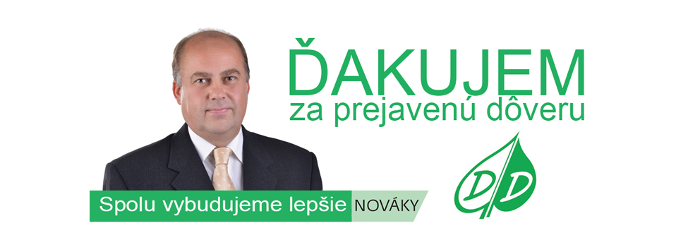Dovoľte mi poďakovať sa Vám za prejavenú dôveru v sobotňajších komunálnych voľbách. Veľmi ma potešilo to množstvo hlasov, ktoré som od Vás dostal. Táto obrovská podpora ma utvrdzuje v tom, že Nováky sú pripravené na zmenu, verím, že len v tom pozitívnom slova zmysle.